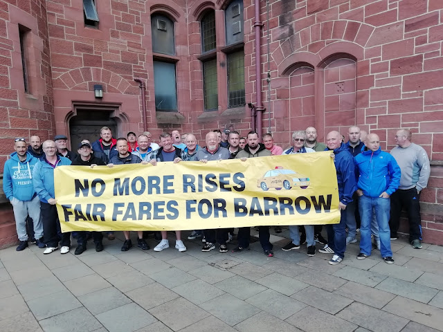 One of my fare's today was telling me that she was a barrister up here in Barrow on a business trip from that there London and that it was her first time oop north. “Well, what do you think of the grim north?” I asked,” well I was baffled when none of the taxis stopped when I hailed them I had to take the number off the side and ring for one myself,” she said. I explained that most cabs here are private hire and that most hackney cabs also work for company’s when not on the rank. Then she went on to say (which a lot of visitors also say) how green it was and that she had been expecting a grim grey industrial town. Shortly afterwards we were going down from a high point at the top of Hawcoat looking out seawards over Walney Island towards the Isle of Man, and she was impressed by the fabulous views of the miles of empty sandy beaches. “I bet it gets busy during the summer,” she said and was very surprised when I told her that we get very few visitors.” Well someone sure wants their butt kicking “she said anywhere else and they would be promoting it for all they were worth.
